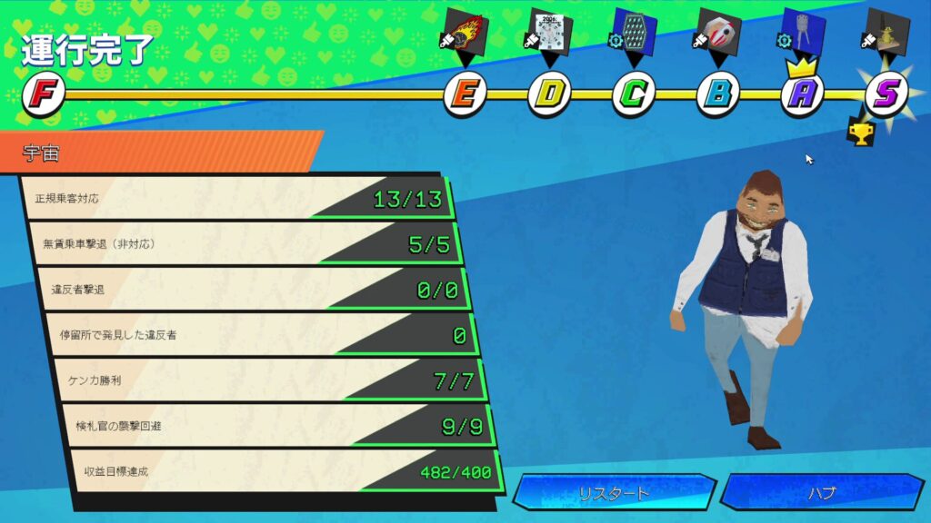 しかし、宇宙ステージではこのように大量の駅があり、普通にやれば乗客が多すぎて、たいてい規約違反検査で失敗してしまう。