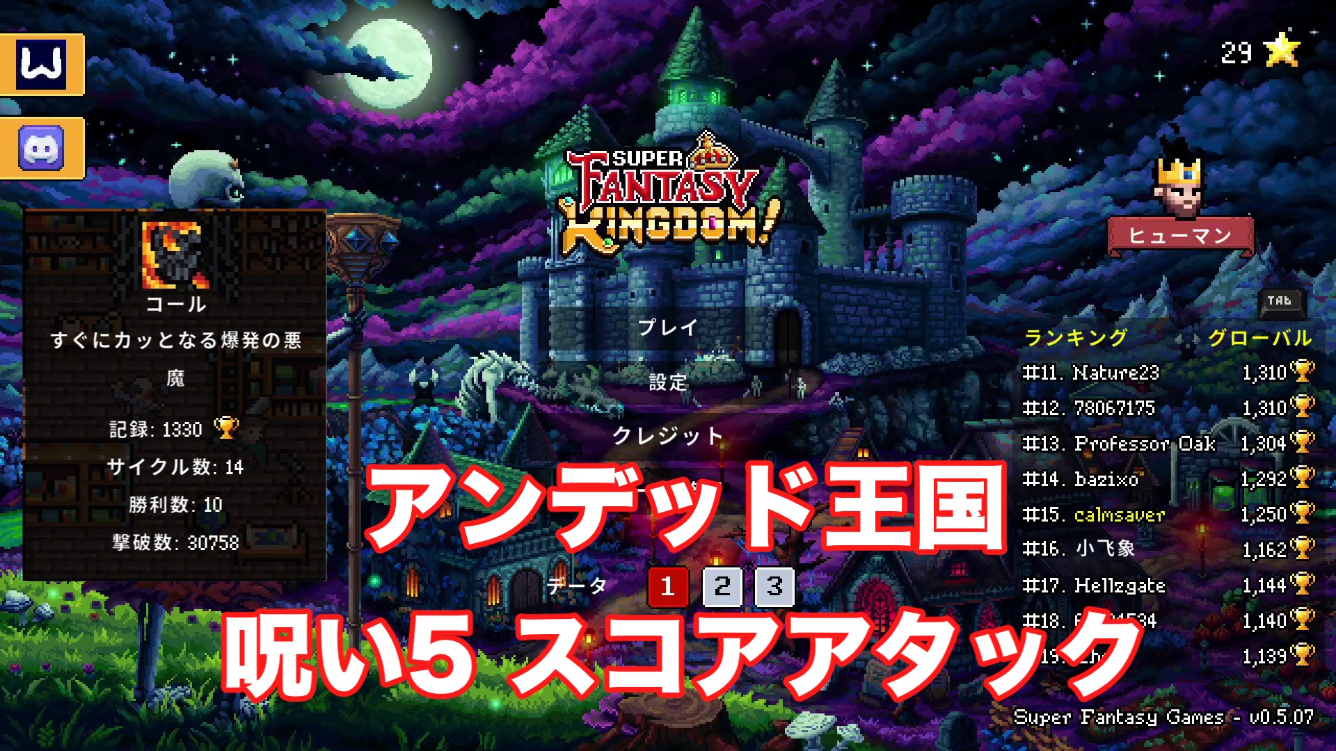 ゲームクリアや「ヒューマン王国」は諦めた。かがり火マックスで良いスコアがでたので満足。
